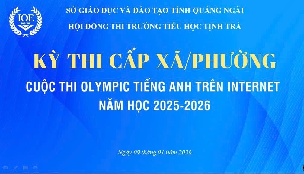⏰Sáng 09/01/2026 Trường TH Tịnh Trà tổ chức cuộc thi tiếng Anh IOE cấp xã, phường cho khối 3,4.